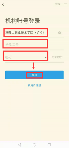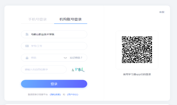 4.选择“其它登录方式”,输入学校名称:马鞍山职业技术学院、学号和密码(初始密码s654321s)。 5.按照提示输入手机号、获取验证码、修改和设置新密码 5.课程学习