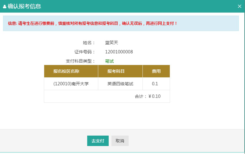 10、确认报考信息: