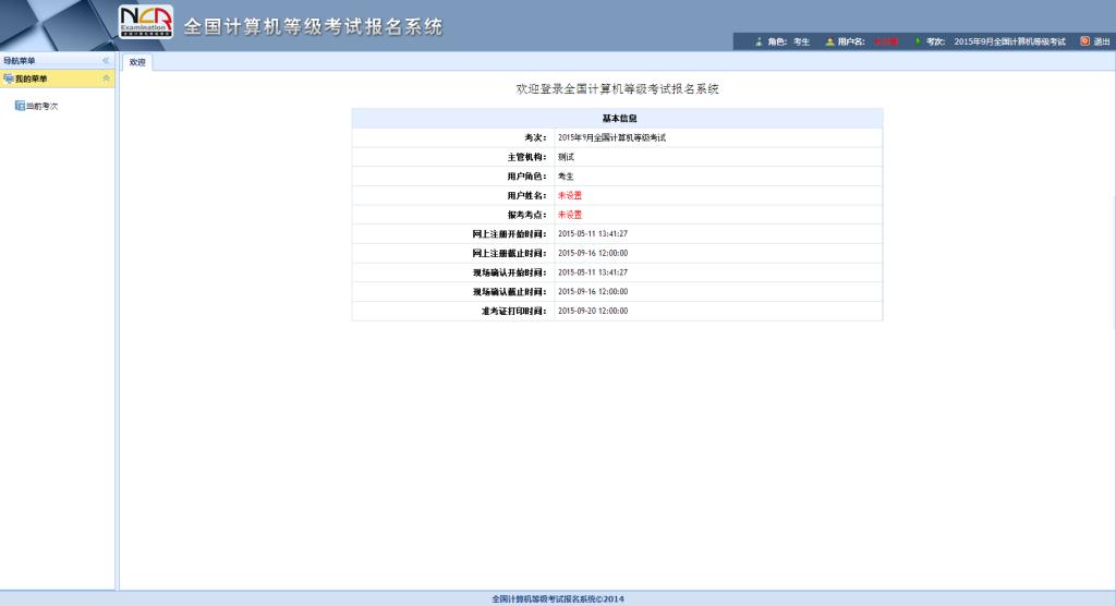 2) 首次登录成功后进入系统的个人报名欢迎界面。