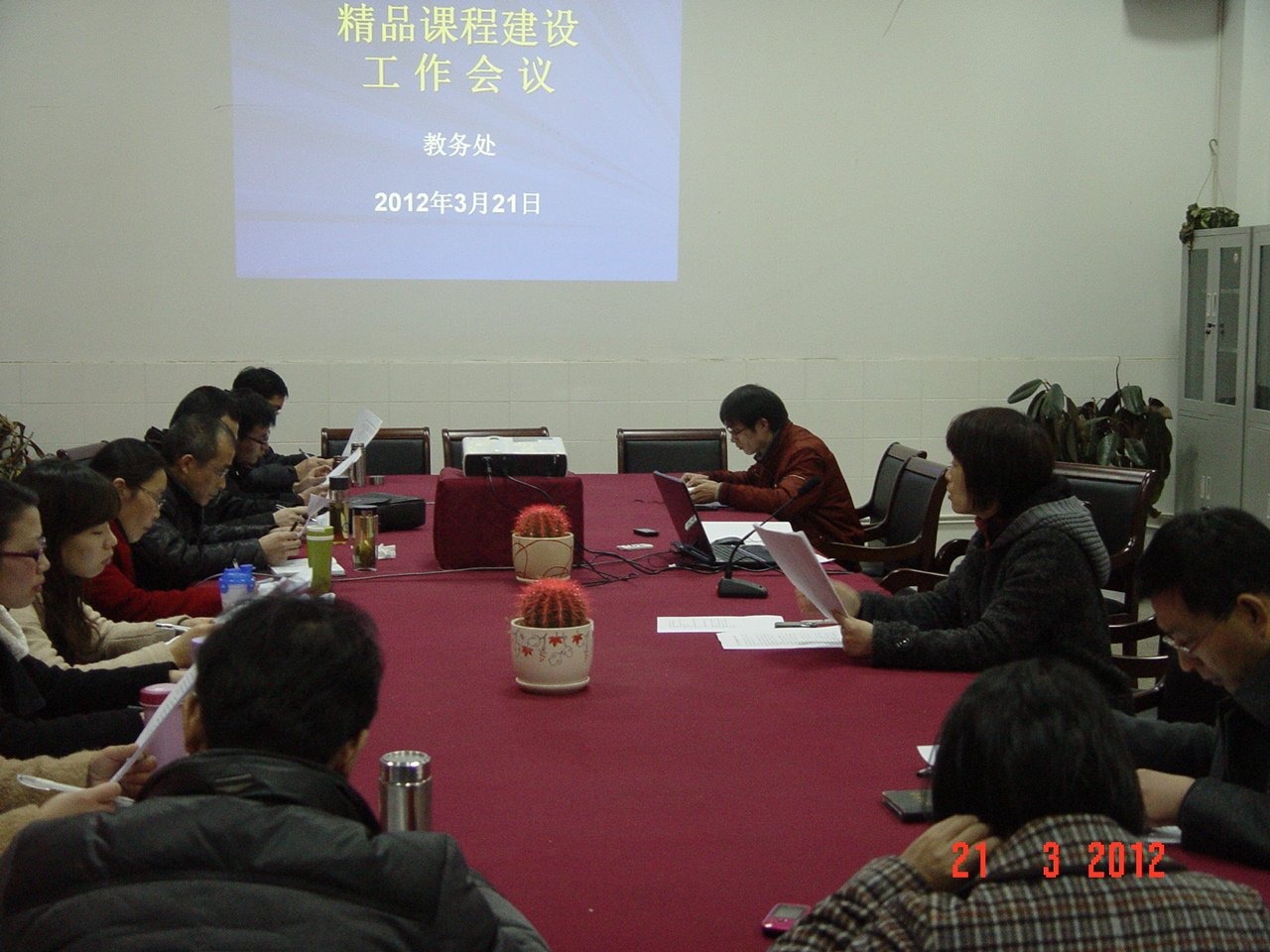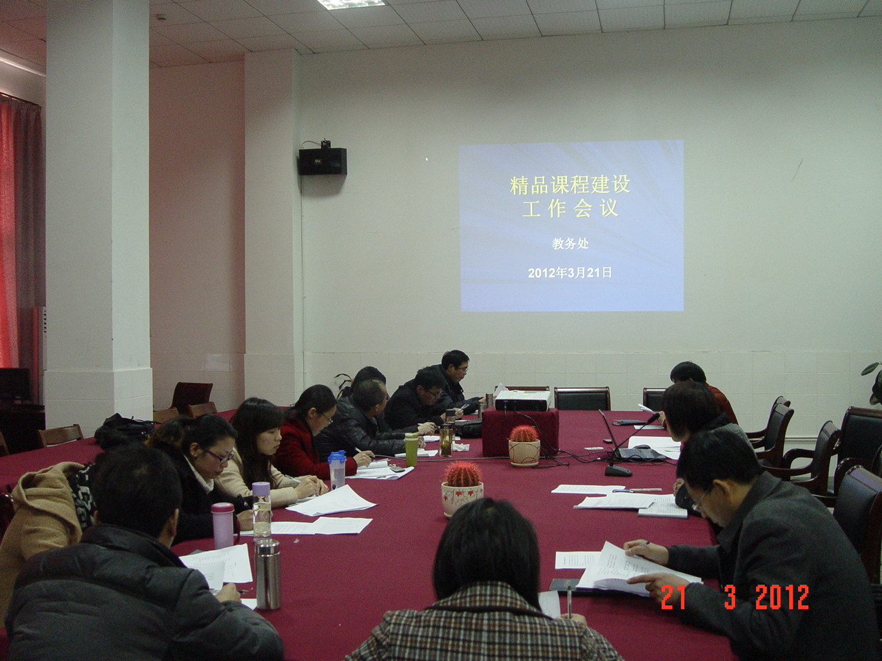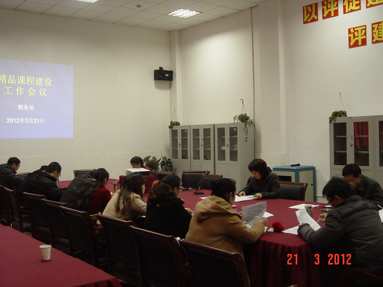 3月21日下午,教务处于图书馆二楼评建办召开精品课程建设推进会。我院省级、校级精品课负责人参加会议。