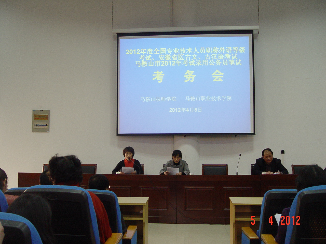 2012年全国专业技术人员职称外语等级统一考试和马鞍山市公务员考试笔试分别于4月7日和8日开考,我院作为马鞍山考区的考点,顺利完成了2111名专业技术人员和2392名公考人员的组考工作。