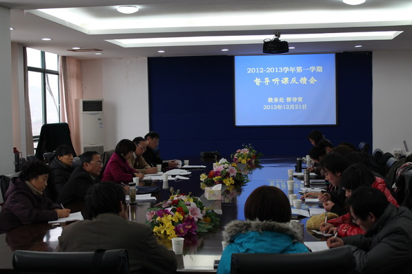 12月21日、25日两天,院教务处、督导室在行政楼五楼会议室相继召开了5场教学督导评课反馈会。安工大质控中心王启平、高甲生两位教授,教务处、督导室、各系部主任、教研室主任及相关教师参加了会议。刘淑凤副院长出席会议并作重要讲话。会议由教务处王青处长主持。