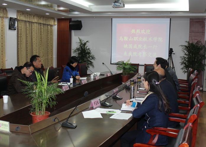 为进一步推进学院内涵建设,加强校际交流与合作,11月26日上午,院长姚国成率教务处相关人员赴安庆职业技术学院进行考察交流。安庆职业技术学院党委书记江洪、院长孙晓峰、副院长谭维奇等热情接待了姚院长一行。